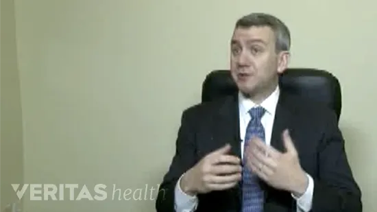 There are two basic ways that the spine can cause leg pain. The first is referral pain from structures within the spine itself, such as the disc or the facet joint or the sacroiliac joint. That pain tends to be more dull, deep, vague, achy. The way that we usually think about pain coming from the spine into the leg is more radiating, electric, burning pain. This comes from irritation of a nerve root within the spine. There are a number of variables within the spine that can cause that irritation of the nerve root - herniated discs, spondylolisthesis where the bones slip on each other, facet joint arthropathy with the little joints in the back of the spine can become arthritic. All of which have a common denominator which is that the hole where the nerve exits becomes smaller. As a result of that, there is more of a propensity towards an inflammatory response along that nerve and that can send pain shooting down into the leg, often there is also associated numbness, sometimes there is some weakness.
