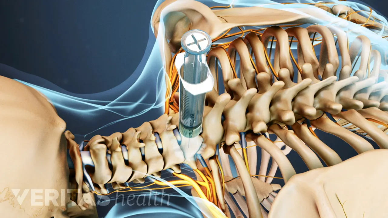 A certified medical professional can use x-ray guidance to administer an injection that delivers medicine (a steroid and/or anesthetic) directly into or near the cervical facet joint. A cervical facet injection goes into the joint, whereas a medial branch nerve block goes near the joint and delivers medicine to the small nerves that carry pain signals from the facet joint to the brain. While these types of injections can bring temporary relief of a few weeks or a few months, they are more of a diagnostic tool to see if the facet joint is the source of pain. Some studies indicate that the medial branch nerve blocks tend to offer longer-lasting relief than facet joint injections in the cervical spine.