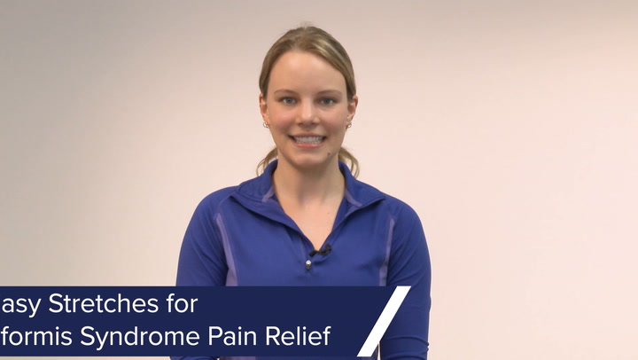 To stretch the piriformis, lie on your back and cross the involved leg over the other . With both knees bent, place both hands together under the knee of the other leg (the lower leg), and gently pull the bottom leg toward your chest and hold both thighs closely until a stretch is felt in the buttock area.