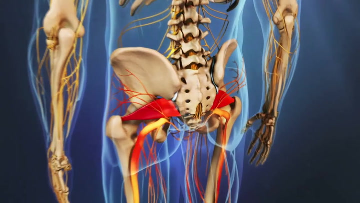 - Piriformis syndrome is a medical condition where your sciatic nerve is irritated or compressed by your piriformis muscle, deep in your pelvis. The sciatic nerve typically courses close to this muscle. The symptoms of piriformis syndrome may affect your buttock and hip and travel down your sciatic nerve into your thigh and leg.